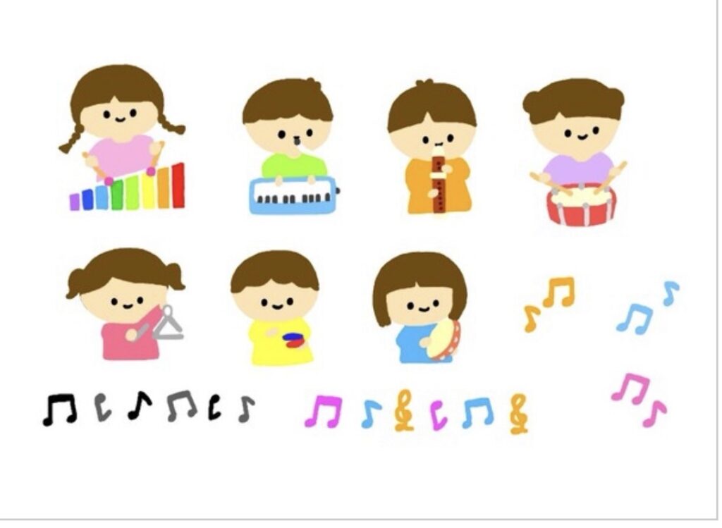 合奏、ハンドベル、リトミック、歌
